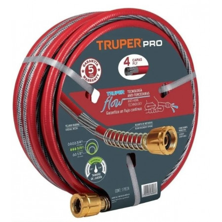 Truper MAN-15X1/2X laistymo žarna pagaminta iš PVC todėl yra minkšta ir lygi. Dėl šios medžiagos sodo žarna yra lanksti, o lygi išorė leidžia lengvai traukti pro medžius, stulpus ir kitas kliūtis. Žarna yra net 4 sluoksnių, iš kurių vienas sluoksnis - tankus plastikinis tinklelis neleidžiantis žarnai užsisukti ar užlūžti.